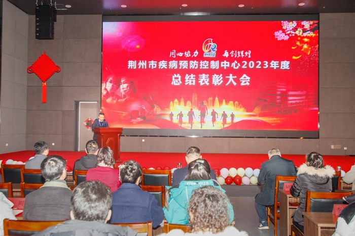 为贯彻落实党的二十大精神,巩固学习贯彻习近平新时代中国特色社会主义思想主题教育成果,建设新时代疾控事业,谱写疾控新时代新篇章。2024年2月1日下午,在春节来临之际,荆州市疾控中心召开2023年度总结表彰大会,中心全体干部职工、离退休职工代表齐聚一堂,现场热闹非凡,喜气洋洋。