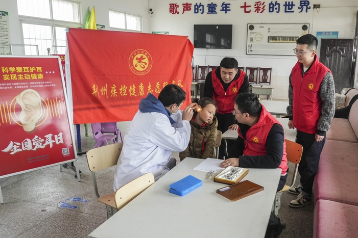 3月3日,在第二十四个全国“爱耳日”到来之际,荆州市疾控中心走进荆州区弥市镇里甲口希望小学,开展以“科学爱耳护耳,实现主动健康”为主题的宣传教育活动,普及听力健康知识,增强儿童青少年听力健康意识。